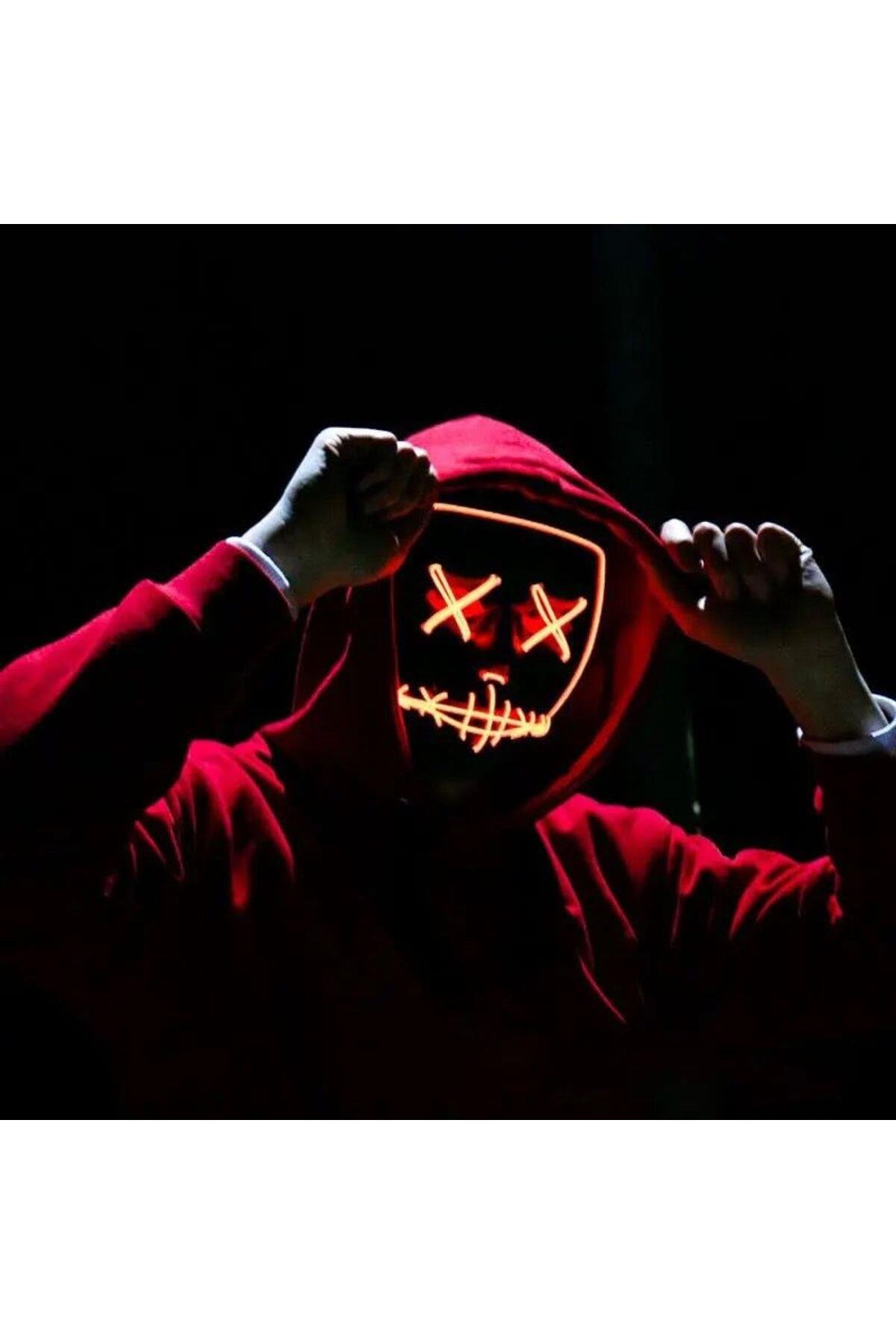 İthal led fosforlu ışıklı kumandalı korku maske cadılar bayramı parti maskesi turuncu