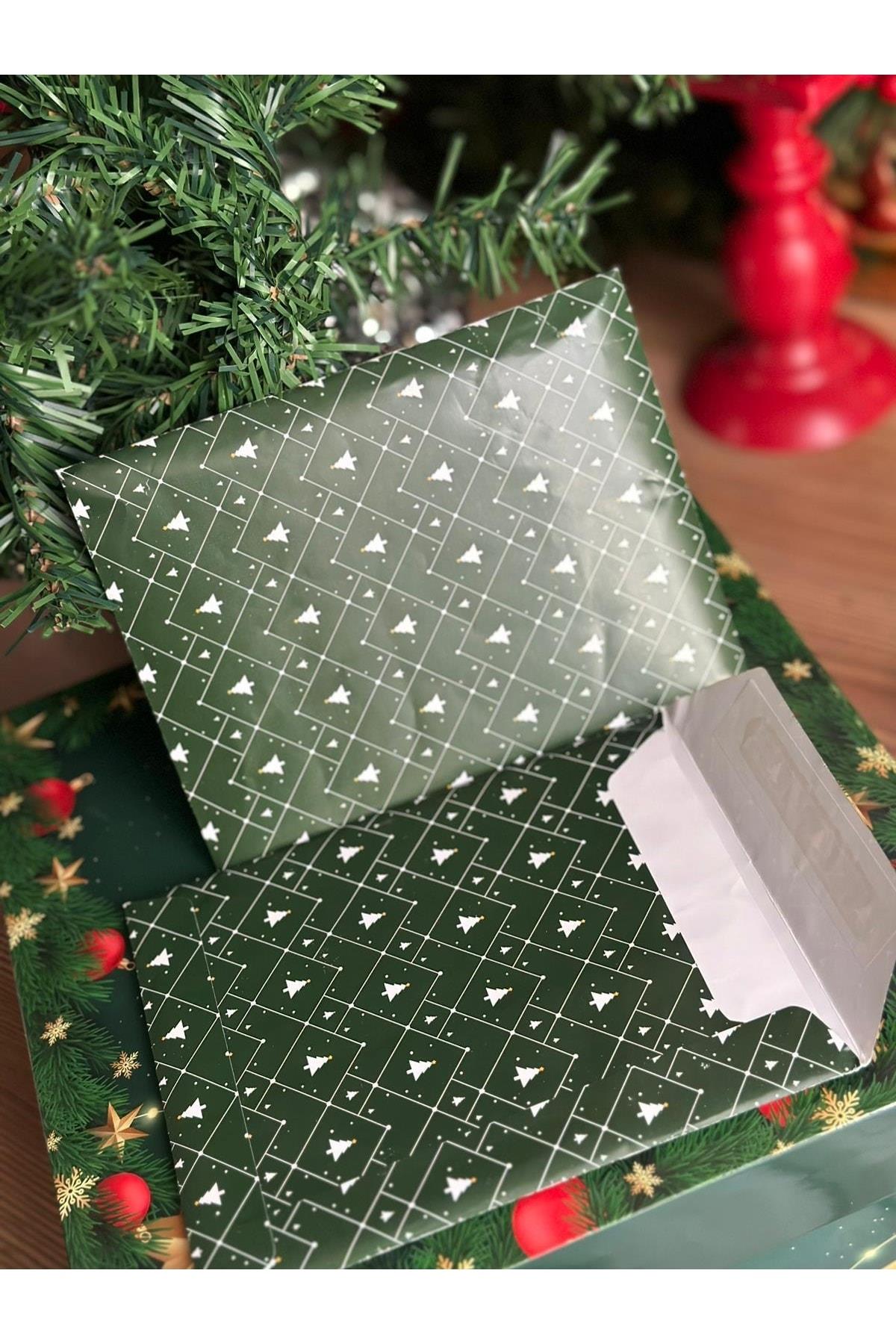 Yeni Yıl Yılbaşı Çam Ağacı Desenli Süslü Baloncuklu Hediye Zarfı Paketi Ambalaj Yapışkanlı